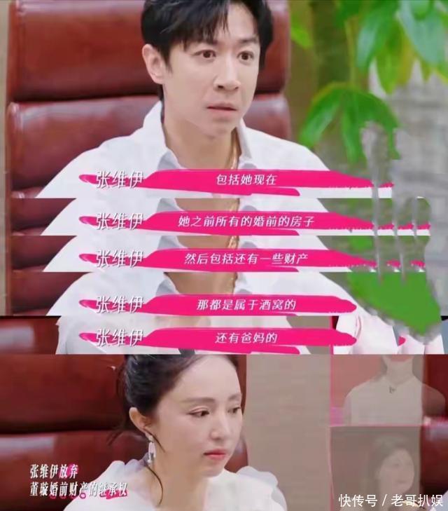 他的计划落空了。 这份婚前协议彻底粉碎了张维伊一家的企图。 之前张维伊的大姑曾经在酒桌上建议:董璇管钱,把张维伊的钱要过来管理,給张维伊生活费就行。